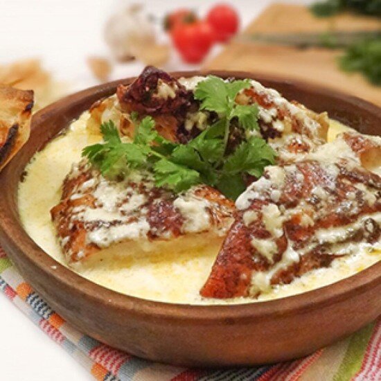 Хинкали в сливочном соусе с чесноком